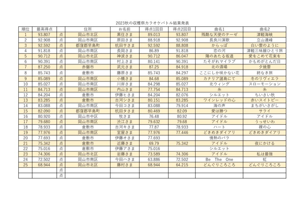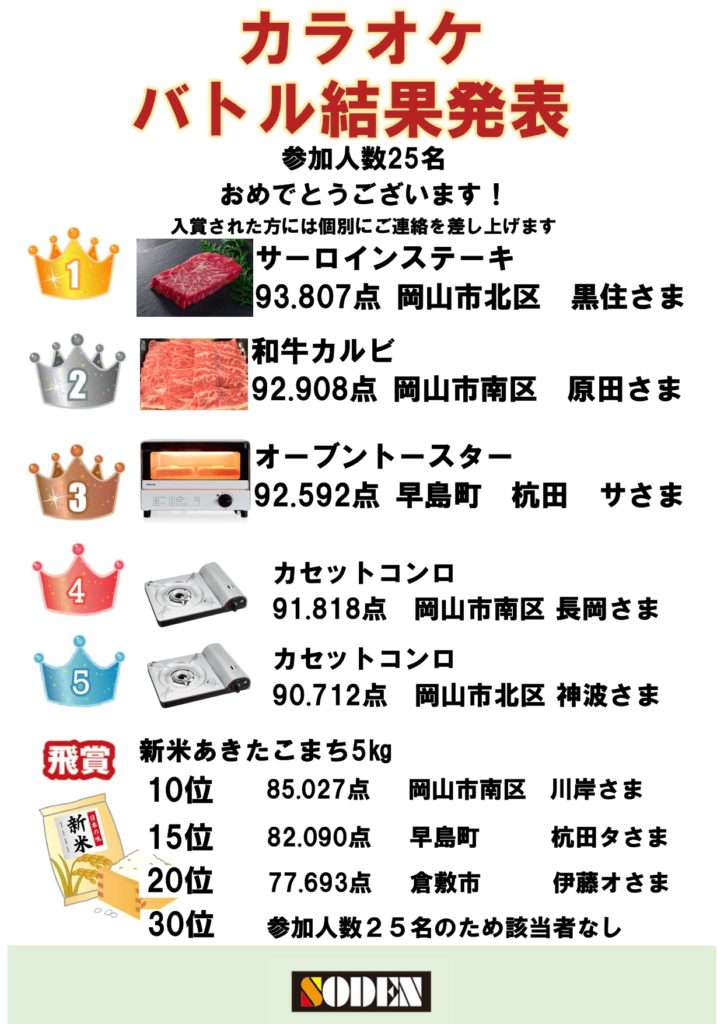 秋の収穫祭 抽選会&カラオケバトル結果発表!